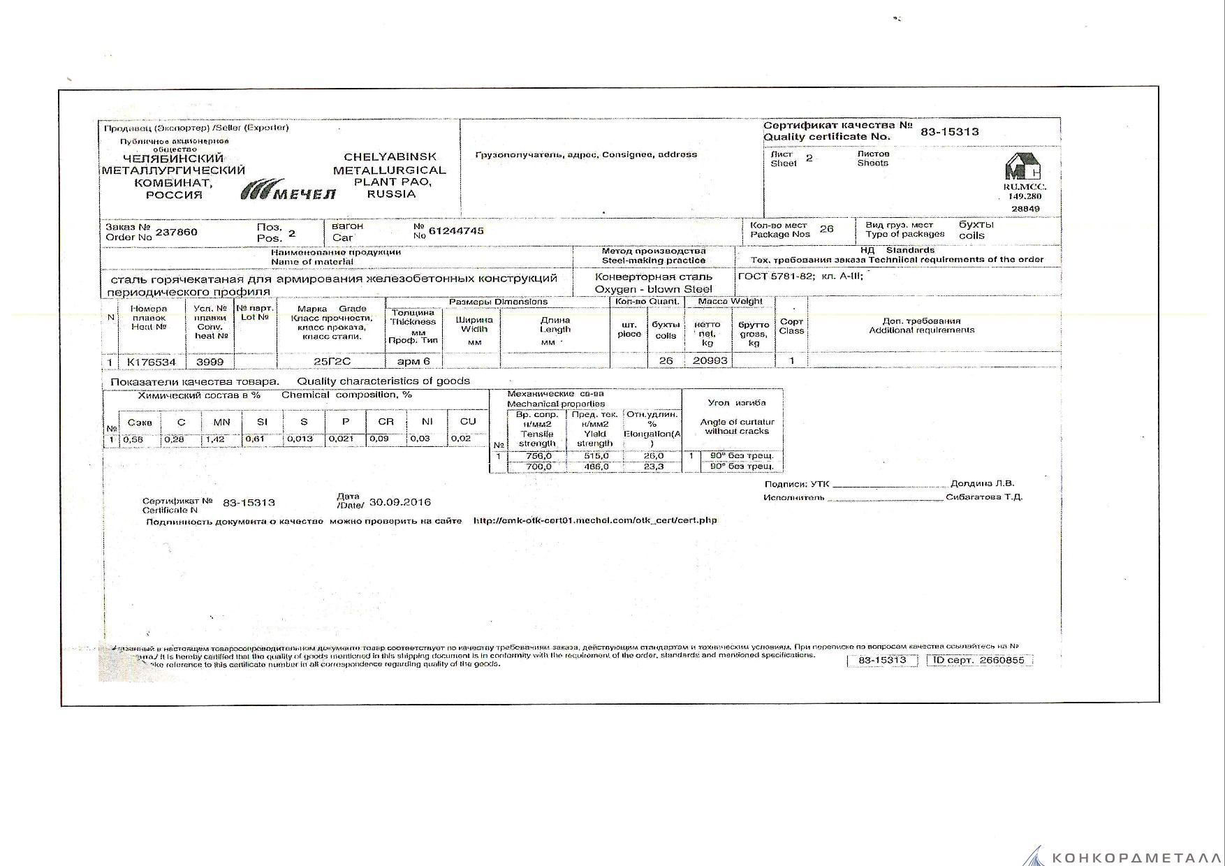 С каждой товарной позицией мы предоставляем все сертификаты и паспорта качества, а также товарно-транспортную накладную.