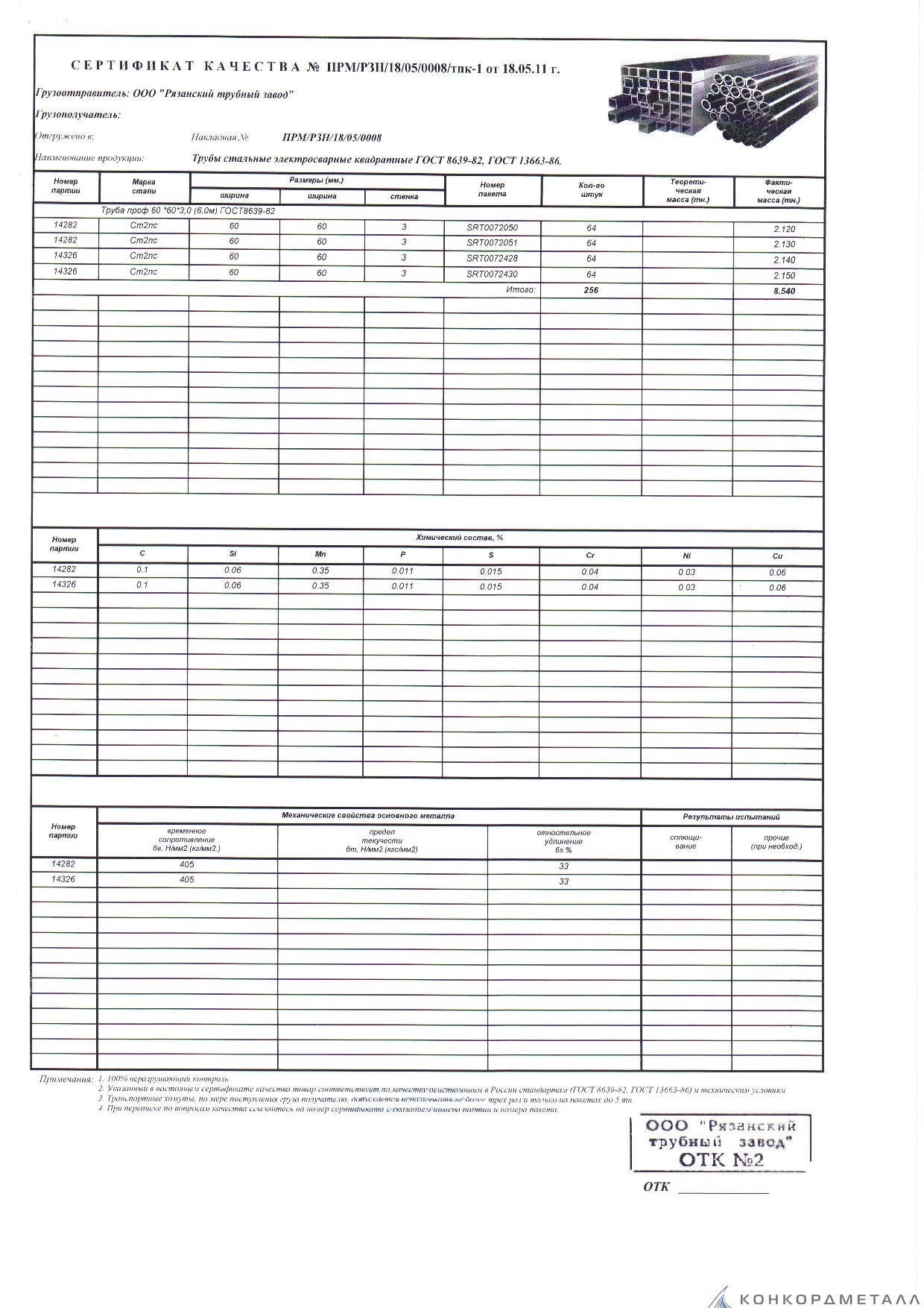 С каждой товарной позицией мы предоставляем все сертификаты и паспорта качества, а также товарно-транспортную накладную.