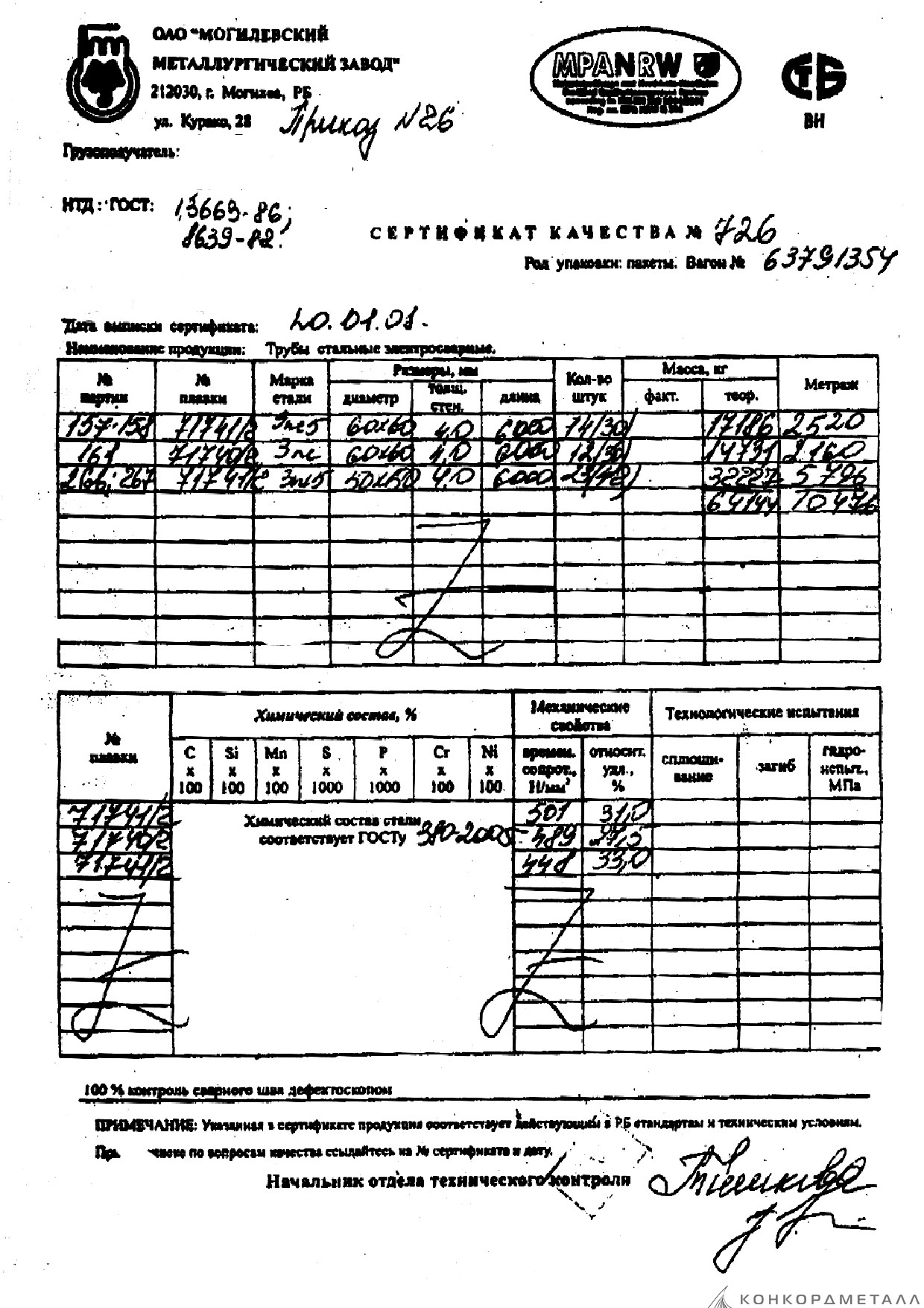 С каждой товарной позицией мы предоставляем все сертификаты и паспорта качества, а также товарно-транспортную накладную.